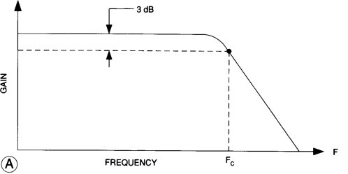 The example filters above are ideal filters, but because filters are made from combinations of physical electrical components, in reality, they do not have perfect attenuation at the cutoff frequency \( f_c \).