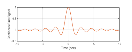 | Sinc: A decaying function that that can be used to represent an attenuating signal, based on a sinusoidal signal. | |