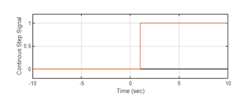 | Step: representes different, digital states which the signal value jumps to instantaneously. A unit step jumps frpm 0 to 1. | |